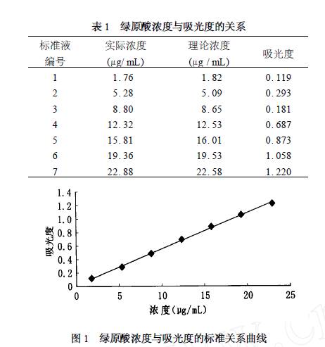 劉冠明, 鄭奕雄, 謝振文, 余土元, 闋志輝 (仲愷農(nóng)業(yè)技術(shù)學(xué)院農(nóng)業(yè)與生物學(xué)院, 廣東廣州 510225) 摘 要:對(duì)廣東北部(韶關(guān)) 和南部(廣州番禺) 兩個(gè)不同生態(tài)區(qū)的金銀花花蕾和葉片綠原酸含量進(jìn)行測(cè)定,結(jié)果表明:金銀花花蕾中的綠原酸含量地區(qū)間存在顯著差異,北部的金銀花綠原酸含量高于南部;葉片中的綠原酸含量地區(qū)間差異不顯著,沒有明顯的地域特征。 關(guān)鍵詞:金銀花; 綠原酸; 花蕾; 葉片 金銀花( Flos lonicerae) 具有清熱解毒、涼散風(fēng)熱的功效,可用于治療溫病發(fā)熱、風(fēng)寒感冒、咽喉腫痛、肺炎、丹毒、蜂窩組織炎、痢疾等多種疾病,為常用的中藥材,具有重要的開發(fā)利用價(jià)值。綠原酸是金銀花中主要的藥用成分之一,是衡量金銀花品質(zhì)的主要指標(biāo),其含量因品種、產(chǎn)地、生長(zhǎng)環(huán)境、栽培方法、藥用部位等而異[ 1 - 6 ] 。目前對(duì)廣東金銀花的分布、種類、品質(zhì)等方面已進(jìn)行了一些研究[ 7 - 8 ] ,但有關(guān)不同生境金銀花品質(zhì)的研究報(bào)道卻少見。本研究以野生金銀花品種華南忍冬( L oniceraconf usa DC. ) 為材料,對(duì)廣東北部和南部?jī)蓚(gè)不同生態(tài)區(qū)的金銀花中的綠原酸含量進(jìn)行了比較,以了解廣東金銀花的品質(zhì)特征及其與生境的關(guān)系,為廣東金銀花的開發(fā)利用提供參考。 1 材料與方法 1. 1 試驗(yàn)材料 華南忍冬金銀花分別采自廣東北部的韶關(guān)市武江區(qū)西聯(lián)鎮(zhèn)、曲江縣龍歸鎮(zhèn)、乳源縣大坪鎮(zhèn)和廣東南部的廣州市番禺區(qū)萬頃沙鎮(zhèn)、鐘村鎮(zhèn)、丹灶鎮(zhèn)。在金銀花開花期摘取植株上的白色花蕾和當(dāng)年枝條上充分成熟的葉片,洗凈后于50 ℃下烘干,粉碎備用。試驗(yàn)用的綠原酸對(duì)照品購自SIGMA 公司,乙醇(分析純) 為市售。 1. 2 試驗(yàn)方法 1. 2. 1 綠原酸提取液制備 稱取金銀花樣品5 g ,用乙醇回流法制備綠原酸提取液,回流提取條件為:80 ℃, 75 %乙醇,10 倍量,回流2 次,每次0. 5 h。提取液過濾后,用60 ℃水浴適當(dāng)濃縮,定容至100 mL 。每個(gè)樣品3 次重復(fù)。 1. 2. 2 綠原酸含量測(cè)定 準(zhǔn)確稱取綠原酸對(duì)照品0. 0011 g ,用蒸餾水溶解,定容至50 mL ,再分別吸取1 、3 、5 、7 、9 、11 、13 mL 配制成不同濃度的標(biāo)準(zhǔn)液,然后用752G型紫外可見分光光度計(jì)于325 nm 處測(cè)定吸光度,繪制出標(biāo)準(zhǔn)曲線,并擬合回歸方程。將各樣品提取液用752G型紫外可見分光光度計(jì)于325 nm 處測(cè)定吸光度,根據(jù)回歸方程計(jì)算綠原酸含量。各金銀花樣品的綠原酸含量采用新復(fù)極差法進(jìn)行多重比較。 2 結(jié)果與分析 2. 1 標(biāo)準(zhǔn)曲線和回歸方程 經(jīng)測(cè)定,綠原酸溶液在325 nm 處的吸光度與濃度有較好的相關(guān)性(表1) 。以綠原酸濃度為橫坐標(biāo)、吸光度為縱坐標(biāo)繪制的標(biāo)準(zhǔn)曲線見圖1 ,擬合的回歸方程為: y = 0. 053010 x +0. 022917 ,式中x 為吸光度, y 為綠原酸濃度, r = 0. 999616。 2. 2 不同生態(tài)區(qū)金銀花的花蕾綠原酸含量比較 測(cè)定結(jié)果(表2) 顯示,金銀花花蕾的綠原酸含量,韶關(guān)點(diǎn)為0. 9786 %~3. 3569 % ,廣州番禺點(diǎn)為0. 3150 %~0. 6100 % ,且韶關(guān)各采樣點(diǎn)的含量均高于番禺點(diǎn)。統(tǒng)計(jì)分析結(jié)果表明,韶關(guān)境內(nèi)不同采樣點(diǎn)間的差異達(dá)到極顯著水平,番禺境內(nèi)各采樣點(diǎn)間也存在差異,韶關(guān)點(diǎn)與番禺點(diǎn)間的差異亦極顯著。說明廣東南、北部地區(qū)的金銀花花蕾中的綠原酸含量一方面具有明顯的區(qū)域特征,另一方面還受各區(qū)域內(nèi)的生態(tài)因子影響。 2. 3 不同生態(tài)區(qū)金銀花的葉片綠原酸含量差異 從表2 還可以看出,金銀花的葉片綠原酸含量,韶關(guān)點(diǎn)為0. 1479 %~0. 1555 % ,廣州番禺點(diǎn)為0. 1529 %~0. 1552 %。統(tǒng)計(jì)分析結(jié)果表明,除個(gè)別采樣點(diǎn)外,大多數(shù)采樣點(diǎn)的差異均不顯著。說明廣東南、北部地區(qū)金銀花葉片的綠原酸含量無明顯差異。 3 結(jié)論與討論 本研究結(jié)果表明,廣東野生金銀花花蕾的綠原酸含量具有明顯的地域特征。其中,廣東北部地區(qū)韶關(guān)的金銀花花蕾綠原酸含量顯著高于南部地區(qū)廣州番禺的金銀花,而葉片綠原酸含量則南、北部地區(qū)間沒有發(fā)現(xiàn)顯著的地域差異,說明廣東北部地區(qū)的自然生境比南部地區(qū)更有利于生產(chǎn)高品質(zhì)的金銀花。
