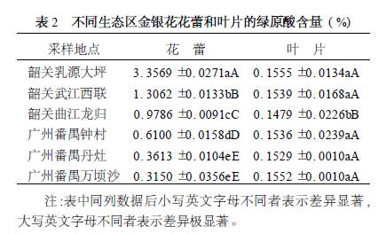 | 廣東南北生態(tài)區(qū)金銀花綠原酸含量比較 |