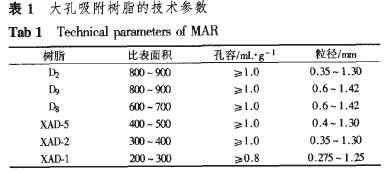 任秀蓮1,2,周春山1,魏琦峰1,2,肖建波1,雷啟福1,湯小勝1(1.中南大學(xué)化學(xué)化工學(xué)院,湖南長沙410083;2.內(nèi)蒙古科技大學(xué)化學(xué)化工學(xué)院,內(nèi)蒙古包頭014030) 摘要:目的研究苦丁茶(llex kudlingcha C.J.Tseng)中熊果酸的分離純化,建立分離純化工藝條件,以利于苦丁茶資源的開發(fā)利用。方法以熊果酸浸出率為考核指標(biāo),采用正交實驗法考察諸因素對浸出率的影響。乙醇提取液經(jīng)沉淀富集和大孔樹脂柱色譜純化得到熊果酸,采用HPLC分析檢測。結(jié)果優(yōu)化的提取條件為:在85%水浴中,以體積分?jǐn)?shù)90%乙醇水溶液為提取溶劑,固液比為1:14,提取2次,每次提取2.5 h,熊果酸的浸出率可達(dá)到1.44%。98樹脂分離富集的最優(yōu)條件:樣品溶液熊果酸濃度l~2mg·mL-1,樣品溶液pH=6.0~7.0,吸附l h,洗脫劑pH=11.0,依次用水、4倍體積30%乙醇、4倍體積90%乙醇以2~3 mL·min-1的流速洗脫,收集90%乙醇洗脫液,熊果酸回收率為97.82%,純度為95.O%。結(jié)論該工藝產(chǎn)品純度高,收率高,可實現(xiàn)工業(yè)化。 關(guān)鍵詞:苦丁茶;分離;純化;熊果酸;大孔吸附樹脂;高效液相色譜法 熊果酸(ursolic acid,UA)是一種弱極性的五環(huán)三萜酸,具有明顯抗炎、降脂、降酶和抗癌作用,是近年新發(fā)現(xiàn)的抗癌活性成分,也是現(xiàn)代腫瘤藥物篩選的新熱點[1]。目前,熊果酸的提取分離主要采用有機溶劑萃取和硅膠柱色譜分步洗脫的方法[2~4],這些方法的工藝流程長,收率低,且使用有毒有機溶劑。近年來,大孔吸附樹脂在藥物提取分離中顯示出越來越重要的作用[5~6],尤其對非極性或弱極性化合物具有良好的吸附分離性能,因此,作者采用大孔吸附樹脂(macro-po.rOllS adsorption rosin,MAR)對苦丁茶中的熊果酸進(jìn)行了分離富集研究,為熊果酸的分離富集開辟新路,對熊果酸工業(yè)化生產(chǎn)有一定的指導(dǎo)意義。 1材料、試劑與儀器 1.1材料、試劑 苦丁茶,2002年采摘,廣西;50℃下烘干粉碎備用;藥材經(jīng)廣西中醫(yī)學(xué)院藥學(xué)院中藥鑒定室鑒定為:冬青科植物苦丁茶(//ex kud/ngcha c.J.Tseng),藥材符合2000年版(一部)有關(guān)項下的規(guī)定。乙醇、甲醇、氫氧化鈉、硫酸等為分析純;熊果酸標(biāo)準(zhǔn)品(Sigma公司,純度為97%);6種非極性大孔吸附樹脂(南開大學(xué)化工廠)的物理結(jié)構(gòu)參數(shù)見表1。