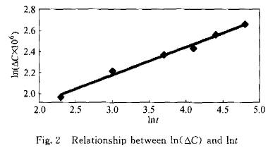 其中 式(7)即為MDMCE的動力學數(shù)學模型.在2.2得出的最佳MDMCE 工藝條件下,測定MDMCE每一階段各罐在不同提取時間的AC,取平均值,對t和AC取對數(shù)值,結果如圖2(時間單位為秒)所示.