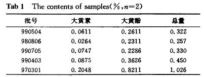 薛漓(廣西梧州藥品檢驗所,廣西梧州543002) 摘要:目的建立痔瘡片中大黃素和大黃酚的含量測定方法。方法 高效液相色譜法。Kromarsil C-s柱,甲醇-o.1 磷酸液(90:10)為流動相,流速為lmL/min,檢測波長254nm。結(jié)果痔瘡片中大黃素和大黃酚能有效分離,且無雜質(zhì)干擾。大黃素進(jìn)樣量在0.046~0.230~g,大黃酚進(jìn)樣量在0.100~0.500btg,均呈良好線性關(guān)系,r=O.9998。大黃素和大黃酚平均回收率分別為99.7 和96.1 (n=5,RSD分別為l_1 和1,9 )。結(jié)論本法準(zhǔn)確、可靠?勺鳛橹摊徠馁|(zhì)量控制方法。 關(guān)鍵詞:痔瘡片;大黃素;大黃酚;高效液相色譜法 痔瘡片由大黃、白芷、蒺藜、功勞木等六味中藥組成。具有清熱解毒、涼血止痛等功效,用于各種痔瘡、肛裂、大便秘結(jié)。已收載于國家藥品標(biāo)準(zhǔn)。但現(xiàn)行質(zhì)量標(biāo)準(zhǔn)僅有TLC鑒別而無含量測定指標(biāo)。為了更好地控制藥品質(zhì)量,我們選取本品中大黃的代表成分大黃素和大黃酚作為質(zhì)控指標(biāo),對其含量測定方法進(jìn)行了研究,為進(jìn)一步完善其質(zhì)量標(biāo)準(zhǔn)提供了參考依據(jù)。 1 儀器與試藥 高效液相色譜儀:Waters 501泵,484檢測器,U6K進(jìn)樣器,SP4290積分儀。 大黃素對照品(中國藥品生物制品檢定所,批號:756—9023,大黃酚對照品(中國藥品生物制品檢定所,批號:0796—9404),甲醇、磷酸等溶劑均為分析純。 痔瘡片(廣西梧州市玉蘭藥廠,批號:990504,980806,990705,990403,970301)。 2 色譜條件 色譜柱:Kromarsil Cl8(250mmX 4.6mm)。大連化學(xué)物理研究所。流動相:參照中國藥典三黃片中大黃的測定條件調(diào)節(jié)比例,甲醇一0.1 磷酸(90:10),流速:lmL/min,檢測波長:254nm。 系統(tǒng)適用性試驗:按上述條件,理論塔板數(shù)按大黃素峰計算為5 300,按大黃酚峰計算為5 500,二者的分離度為4.9,連續(xù)進(jìn)樣5針,大黃素和大黃酚峰面積的RSD均為0.5 0A。 3 對照品及供試品的制備 對照品溶液的制備:分別精密稱取大黃素和大黃酚對照品適量,加無水乙醇一醋酸乙醋(2:1)制成每lmL含大黃素0.Olmg,大黃酚0.025m_g的混合溶液,即得。 供試品溶液的制備:取本品2O片,除去糖衣,精密稱定,研細(xì)(過三號篩),精密稱取適量(約相當(dāng)于2片)置錐形瓶中,精密加乙醇25mL,密塞,稱定重量,加熱回流1h,放冷,用乙醇補足減失的重量,濾過。精密量取續(xù)濾液10mL,置燒瓶中,水浴蒸干,加3O 乙醇一鹽酸(10:1)溶液15nlL,水浴加熱水解1h,立即冷卻,置分液漏斗中,加氯仿強力振搖提取4次,每次15mL,合并氯仿液,水浴蒸干,殘渣用無水乙醇一醋酸乙酯(2:1)溶解,移入25mL量瓶中,并稀至刻度,搖勻,微孔濾膜(O.45~m)濾過,取續(xù)濾液即得。另取不含大黃的陰性樣品適量,同法制成陰性對照溶液,按上述色譜條件測定,結(jié)果表明陰性對照品無干擾。 4 檢測 分別精密吸取對照品溶液與供試品溶液各10ul,注入液相色譜儀,測定,以峰面積外標(biāo)法計算含量,即得。 5 線性關(guān)系考察 精密吸取對照品溶液4,5,7.5,1O,15,20ul,分別進(jìn)樣分析,測定峰面積,以峰面積值為縱坐標(biāo),對照品進(jìn)樣量為橫坐標(biāo),作線性回歸,得回歸方程,大黃素Y=98.813X—10.807;大黃酚Y=1.990X+146.334;r=0.9998,結(jié)果表明,大黃素在0.04610.230ug,大黃酚在0.100~0.500ug內(nèi)呈良好的線性關(guān)系。 6 精密度試驗 取同一批號樣品的供試液,重復(fù)進(jìn)樣5次,測定,峰面積值分別為:大黃素164,170,167,166,166,平均值:166.8,RSD=1.3 ;大黃酚485,490,489,489,487,平均值:487.8,RSD=0.4 ,精密度良好。 7 穩(wěn)定性試驗 取同一批號的供試品液分別在2,5,1O,15h進(jìn)行測定,結(jié)果表明在15h內(nèi)基本穩(wěn)定(RSD=1.5 )。 8 重現(xiàn)性試驗 取同一批號的樣品,分別取樣5份,按供試品溶液制備方法制備,進(jìn)樣,測定,結(jié)果(mg/g):大黃素0.205,0.201,0.203,0.207,0.209,平均值:0.205,RSD=1.6 ;大黃酚0.822,0.828,0.823,0.831,0.802,平均值:0.821,RSD=1.4 ,表明本方法重現(xiàn)性良好。 9 加樣回收率試驗 精密稱取已測定含量的樣品(tit號:970301)約0.4g,精密加入適量大黃素和大黃酚對照品,按含量測定方法測定,計算回收率,5次實驗結(jié)果分別為(%):大黃素99.7,100.9,99.2,100.6,98.2,平均回收率99.7 ,RSD=1.1 ;大黃酚94.7,98.9,96.8,94.3,96.0,平均回收率96.1 ,RSD=1.9 。 1O 樣品測定 取樣品5批,按上述方法測定含量,結(jié)果見表l。表1 樣品測定結(jié)果( %,n=2)
