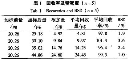 田澍,顧學(xué)芳,張其平,張躍華 (南通大學(xué)化學(xué)化工學(xué)院,江蘇南通226O07) 摘要:采用甲醇超聲提取,液相色譜分離的方法測(cè)定化妝品中熊果酸的含量。色譜條件為:Agilent HC—Cl8(250 mm×4.6 mm,5um)色譜柱,流動(dòng)相V(甲醇):V(水):V(冰乙酸)=87:13:0.03,流速1.0 mL/min,紫外檢測(cè)波長(zhǎng)215nm。結(jié)果表明,在此條件下熊果酸在0.2 ug/ml~103ug/mL與相應(yīng)的峰面積具有良好的線性關(guān)系(r>0.999 7),線性回歸方程為Y=25.367 5x+0.546 9,回收率在96.4% ~101.3%,方法精密度RSD<3.6%。 關(guān)鍵詞:化妝品;熊果酸;高效液相色譜法 熊果酸(uA),又名烏索酸、烏蘇酸,屬于口一香樹脂醇型五環(huán)三萜類化合物。主要分布在女貞子、山楂、白花蛇舌草等植物中,以游離形式或結(jié)合成糖苷存在。其藥理活性表現(xiàn)在免疫增強(qiáng)、降血糖、抗病毒和抗腫瘤等方面。隨著研究的深入,熊果酸的抗氧化性在美容護(hù)膚品等方面的應(yīng)用被逐漸開發(fā)。作為化妝品,熊果酸性質(zhì)穩(wěn)定,顏色和氣味不隨時(shí)間改變,而且有很好的觸摸感。日本在1983年一2004年的有關(guān)熊果酸的29篇專利中,有l(wèi)0篇是關(guān)于熊果酸的皮膚美容保健方面的應(yīng)用,熊果酸及其鹽或衍生物能作為蛋白酶抑制劑,能有效預(yù)防和治療皮炎、皮膚粗糙、干燥等;熊果酸及其衍生物能抗紫外線、改善和恢復(fù)真皮膠原纖維束結(jié)構(gòu),起到美白和防皺作用。然而我國(guó)目前對(duì)僅在高檔化妝品中添加的熊果酸在質(zhì)量控制上尚缺乏統(tǒng)一標(biāo)準(zhǔn),2005版藥典采用的薄層掃描法測(cè)定的其實(shí)為熊果酸和其同分異構(gòu)體齊墩果酸(OA)的總含量。作者比較了3種不同色譜柱對(duì)UA的分離效果,建立了反相高效液相色譜法測(cè)定化妝品中熊果酸含量的方法,并對(duì)市場(chǎng)上不同品牌中高檔化妝品中UA的含量進(jìn)行了測(cè)定,為建立化妝品質(zhì)量標(biāo)準(zhǔn)提供參考。 1 實(shí)驗(yàn)部分 1.1 儀器與試劑 Agilent 1100高效液相色譜儀(紫外檢測(cè)器), Agilent色譜儀器公司;超聲波清洗儀,上海醫(yī)用儀器廠;Mettler AE 240分析天平(1/100 000天平),梅特勒一托利多(上海)儀器有限公司。熊果酸,99%,中國(guó)藥品生物制品鑒定所;甲醇,色譜純,美國(guó)Tedia公司;其余試劑均為國(guó)產(chǎn)分析純。 1.2 色譜條件 色譜柱:Agilent HC—C18(250 alla×4.6mm,5/um),Agilent ZORBAX Eclipse XDB—Cl8(250 mm×4.6 mm,5/um),Agilent TC—Cl8(250mm×4.6 mm, 5/um);進(jìn)樣量20ul;流動(dòng)相為V(甲醇):V(水):V(冰醋酸)=87:13:0.03,流速為1.0 mL/min;紫外檢測(cè)波長(zhǎng)為215nm。 1.3 標(biāo)準(zhǔn)溶液和樣品溶液的配制 精密稱取熊果酸標(biāo)準(zhǔn)品1.23 mg置于10 mL容量瓶中,用甲醇稀釋并定容,搖勻,配成質(zhì)量濃度為123ug/ml的溶液。 精確稱取化妝品試樣約1.000 g于具塞錐形瓶中,加甲醇10 mL,超聲提取40 min,離心分離,取上清液以0.45/um濾膜過濾,轉(zhuǎn)移至50 mL容量瓶中,甲醇定容[1]。 2 結(jié)果與討論 2.1 色譜條件的選擇 經(jīng)紫外全波長(zhǎng)掃描,熊果酸甲醇溶液λmax=206 nm,在此檢測(cè)波長(zhǎng)下,流動(dòng)相中甲醇的紫外吸收干擾較大,基線不穩(wěn),故選擇215 nm為檢測(cè)波長(zhǎng)。 鞠建華等[2]采用甲醇一水一磷酸(體積比為90: 10:0.05)流動(dòng)相體系,王向紅等 3采用乙腈一甲醇一水一磷酸(體積比為80:10:10:0.05)流動(dòng)相體系,均可實(shí)現(xiàn)基線分離。經(jīng)重復(fù)試驗(yàn),二者在保留時(shí)間,理論塔板數(shù)上的差別不大?紤]到經(jīng)濟(jì)、操作等因素,采用基于甲醇一水的流動(dòng)相體系。添加少量醋酸以創(chuàng)造弱酸性條件(調(diào)節(jié)pH=4.O),有利于分離,同時(shí)可以改善峰形,并且以醋酸為添加劑時(shí)熊果酸保留時(shí)間小于以正磷酸為添加劑時(shí)保留時(shí)間。喬非等[4]還利用三乙胺作為掃尾劑改善峰形(在作者所選用的色譜柱系統(tǒng)中未能起到明顯的作用)。作者選取流動(dòng)相為甲醇一水一醋酸體系(體積比為87:13: 0.03)。 取同一標(biāo)準(zhǔn)溶液,按以上色譜條件,流速1.0 mL/min分別進(jìn)樣,得到熊果酸在3種不同色譜柱下的色譜結(jié)果,記錄保留時(shí)間、柱效。結(jié)果表明, HC—C18色譜柱理論塔板數(shù)為14 563,保留時(shí)間為l6.35 min,柱效明顯高于其他兩根色譜柱,只是保留時(shí)間稍長(zhǎng),ZORBAX Eclipse XDB—C18色譜柱保留時(shí)間最短,僅為11.65 min,但其柱效也最低,塔板數(shù)僅為10 346。根據(jù)色譜柱資料,TC—C18柱碳載量為l2%,ZORBAX Eclipse XDB—C18柱碳載量為lO%,而HC—C18柱碳載量為18%,說明高表面積和更高的碳載量能使賦形劑和溶劑峰與待測(cè)組分色譜峰更好的分離。故選擇HC—C18柱,它能更好地符合分析要求。Agilent HC—Cl8色譜柱采用1.2色譜條件,圖譜見圖1。