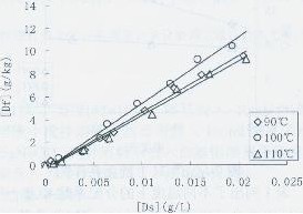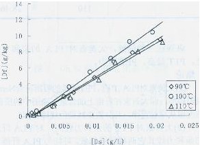 王嘉偉,王祥榮(蘇州大學(xué)紡織與服裝工程學(xué)院,江蘇蘇州215021) 一直以來分散染料在聚酯纖維上應(yīng)用很廣泛文獻(xiàn)報(bào)道也很多,但是最近研究發(fā)現(xiàn)合成染料對(duì)人體皮膚有刺激作用甚至導(dǎo)致皮膚病及誘發(fā)癌等,其中以分散染料尤為突出。隨著人們環(huán)保意識(shí)的增強(qiáng)及各項(xiàng)環(huán)保法規(guī)的逐步完善,合成染料面臨著諸多考驗(yàn)。而天然染料以其獨(dú)特的無毒、無害、對(duì)皮膚無過敏性和致癌性.且有較好的生物降解性而重新回到人們的視野中在全球性綠色革命浪潮的影響下,天然染料又開始被世人所重視。 大黃素是一種傳統(tǒng)中草藥大黃的有效成分,分子式如下: 大黃素具有較強(qiáng)的抗菌消炎作用,用大黃素對(duì)織物進(jìn)行染色,可能會(huì)對(duì)穿著者起到一些治療保健的作用。在消費(fèi)者普遍追求綠色天然保健的今天,研究天然染料用于合成纖維的染色具有重要意義。本文用大黃素對(duì)PLA、PTT、PET三種纖維進(jìn)行染色熱力學(xué)試驗(yàn),旨在探討大黃素對(duì)這三種纖維的染色機(jī)理。 1實(shí)驗(yàn)部分 1.1材料及儀器: 纖維:83.3dtex/36f PLA纖維、83.3dtex/36f PTT纖維、75.5dtex/24f PET纖維染料:98%天然大黃素(淮安巍偉植化研究所) 藥品:碳酸鈉,氫氧化鈉,丙酮,醋酸,DMF(均為分析純),精練劑(實(shí)驗(yàn)室自制),皂片,平平加0(市售)。 儀器:DHG一9070A型上海恒溫鼓風(fēng)干燥箱(上海精宏實(shí)驗(yàn)設(shè)備有限公司),數(shù)顯恒溫水浴鍋HH一6(國華電器有限公司),玻璃儀器氣流烘干器(鞏義市領(lǐng)科儀器廠),MP200A型電子天平(上海第二天平儀器廠),PHS-2C型精密酸度計(jì)(上海雷磁儀器廠),IR一12SM型紅外染色機(jī)(臺(tái)灣瑞比染色試機(jī)有限公司),Shimadzu UV-2550雙光束紫外可見分光光度計(jì) 1.2大黃素穩(wěn)定性測(cè)試: 1.2.1酸堿穩(wěn)定性測(cè)試 分別配置不同pH值的緩沖溶液,用pH值為3—11的緩沖溶液精確配置0.04g/L的大黃素水溶液。觀察顏色變化,并用紫外分光光度計(jì)掃描。 1.2.2溫度穩(wěn)定性測(cè)試 精確配制濃度為0.02g/L、pH值為5的大黃素水溶液。分別在室溫、100℃、120℃下恒溫2h,快速冷卻至室溫觀察顏色變化,進(jìn)行光密度測(cè)試。 1.3染色工藝 1.3.1前處理: 將紗線潤濕后于1g/L碳酸鈉、1g/L精練劑,95℃條件下精練60min,然后用60℃熱水洗,再冷水洗,晾干。 1.3.2染色 染液配方: 大黃素(O.W.f)%X 平平加O 1g/L pH 5 浴比1:1000 染液的配制:用丙酮作為溶劑配制大黃素母液,在染杯中精確移入所需量的染料母液,然后依次加入勻染劑、水。于90℃長時(shí)間加熱,除去染液中的丙酮,然后補(bǔ)加水。 1.3.3標(biāo)準(zhǔn)工作曲線的繪制 DMF溶液作為溶劑配置0.1g/L染料母液,分別移取4ml,6ml,10ml,12ml,16ml,20ml定容至25ml容量瓶中,進(jìn)行光密度測(cè)試。 1.3.4吸附等溫線的繪制 吸附等溫線試驗(yàn)按上述方法配制不同濃度染液預(yù)先加熱至80℃,快速投入纖維,以3℃/min的速率升溫至90℃、100℃或110℃,為使染色達(dá)到平衡,染浴保溫4 h。染畢,取出纖維,用冷水洗滌,再于50℃水洗10 min,然后冷水洗,晾干。 1.3.5測(cè)試方法 采用DMF于40℃(PLA纖維)或130℃(PTT、PET纖維)下萃取染色纖維上的染料,直至纖維無色。最后用DMF對(duì)萃取液定容,Shimadzu UV-2550雙光束紫外可見分光光度計(jì)測(cè)定萃取液吸光度;按標(biāo)準(zhǔn)工作曲線計(jì)算萃取液的染料濃度。根據(jù)萃取液中染料濃度和纖維重量計(jì)算纖維吸收的染料量Df,根據(jù)染浴中投加染料量與纖維吸收的染料量之差確定染色殘液中的染料濃度Ds。 2結(jié)果和討論 2.1大黃素的穩(wěn)定性