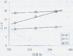 在一定溫度范圍內(nèi),△H°作為恒定,將-△μ°對(duì)T的關(guān)系作圖可得一直線(如圖7),從直線的斜率可求得△S,從直線的截距可求得△H。 圖7-△μ0o對(duì)T的關(guān)系作圖