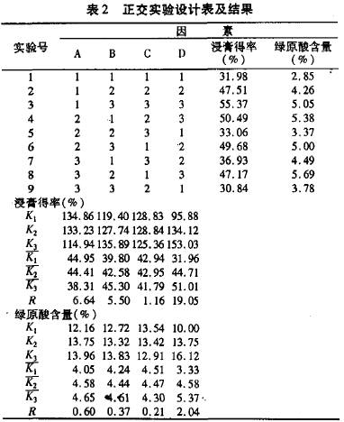 正交設(shè)計研究金銀花綠原酸煎提工藝