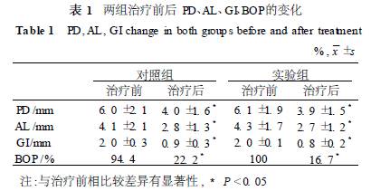 大黃素是中藥大黃的主要有效成分,近年的藥理學(xué)研究顯示其有抑菌、抗炎及免疫調(diào)節(jié)作用[ 1 ] 。體外研究證實(shí),中藥大黃素對(duì)人牙周膜細(xì)胞無(wú)明顯毒性,且能阻斷內(nèi)毒素對(duì)人牙周膜細(xì)胞的毒性[ 2 ] 。本研究選擇中重度牙周炎患者在牙周刮治基礎(chǔ)上輔助局部用大黃素,觀察臨床牙周指數(shù)、齦溝液量及炎性介質(zhì)水平,評(píng)價(jià)療效。 1 材料與方法 1. 1 病例選擇 我院牙周科門診選擇中、重度慢性牙周炎患者(知情同意) ,入選標(biāo)準(zhǔn):受試牙位探診深度(p robing dep th, PD) ≥6 mm,牙齦指數(shù)( gingival index, GI) ≥2, 附著喪失( attachment loss, AL ) ≥3 mm, X線顯示牙槽骨水平型或角型吸收超過(guò)根長(zhǎng)1 / 3 ,牙松動(dòng)度Ⅰ~Ⅱ度。身體健康, 3個(gè)月內(nèi)未口服抗生素或免疫抑制劑。排除患有系統(tǒng)性疾病及吸煙者。經(jīng)初步篩選,將36例36個(gè)牙周位點(diǎn)納入本實(shí)驗(yàn)中,前牙11個(gè),后牙25個(gè),其中男性20例,女性16例,年齡35~60歲,平均44歲。 1. 2 大黃素藥條準(zhǔn)備 在我院中心實(shí)驗(yàn)室,將大黃素標(biāo)準(zhǔn)品(中國(guó)藥品生物制品檢定所)配置濃度為0. 1 mg/mL大黃素溶液5 mL,將醫(yī)用可吸收明膠海綿(江蘇金陵制藥有限責(zé)任公司,國(guó)藥管械(準(zhǔn))字99第364010號(hào)) ,在無(wú)菌條件下剪成2 mm ×2 mm×3 mm,置入5 mL 溶液中浸泡,冰箱4 ℃保存?zhèn)溆谩?/span> 1. 3 檢查項(xiàng)目和方法 1. 3. 1 臨床牙周指標(biāo)包括GI、探診出血( bleedingon p robing,BOP) 、PD和AL。 1. 3. 2 齦溝液( gingival crevicular fluid, GCF)收集及體積換算:兩組受試牙位治療前,刮除齦上結(jié)石及菌斑,常規(guī)隔濕、干燥,按袋口法,將30#標(biāo)準(zhǔn)紙尖插入牙周袋內(nèi)30 s取出后,測(cè)量并記錄每根紙尖濕潤(rùn)長(zhǎng)度;然后將紙尖浸潤(rùn)端剪入含有200 mL標(biāo)本稀釋液的無(wú)菌Eppondorf管中, 4 ℃離心(10000 r/min, 30s) ,取上清液, - 20 ℃凍存(用于IL - 1β濃度測(cè)定) 。按參考文獻(xiàn)[ 3 ]制作30#標(biāo)準(zhǔn)紙尖吸液正常人血清體積與濕潤(rùn)長(zhǎng)度關(guān)系得標(biāo)準(zhǔn)曲線,求出回歸方程y = 0. 0078x2 + 0. 0111x ( r2 = 0. 9922) ,用此方程將紙尖濕潤(rùn)長(zhǎng)度換算成樣品體積。 1. 3. 3 GCF中IL - 1β濃度檢測(cè) 采用雙抗夾心EL ISA法,用人IL - 1β EL ISA試劑盒(深圳晶美生物工程有限公司)測(cè)定GCF中IL - 1β濃度。 1. 4 分組 經(jīng)治療前檢查并記錄GI、BOP、PD、AL、GCF量和GCF中IL - 1β濃度后,常規(guī)用Gracey刮治器對(duì)受試牙進(jìn)行齦下刮治, 3%雙氧水和生理鹽水沖洗,按隨機(jī)表分為對(duì)照組和實(shí)驗(yàn)組各18例,后者牙周袋內(nèi)放置已備大黃素藥條。囑患者1 h內(nèi)不進(jìn)食,不漱口, 1周內(nèi)不口服任何藥物。1周后復(fù)查GI、BOP、PD、AL、GCF量和GCF中IL - 1β濃度。 1. 5 統(tǒng)計(jì)學(xué)處理 治療前后的GI、PD、AL、GCF量變化用配對(duì)t檢驗(yàn),兩治療組間的差別用成組t檢驗(yàn);兩組治療前后BOP陽(yáng)性率變化用χ2 檢驗(yàn);兩組治療前后GCF中IL - 1β濃度變化用t檢驗(yàn),組間差異用成組t檢驗(yàn),并用百分?jǐn)?shù)表示兩組的抑制率。 2 結(jié)果 2. 1 牙周臨床指標(biāo)情況 治療后兩組患者的PD、AL、GI均小于治療前,且差異有統(tǒng)計(jì)學(xué)意義( P <0. 05) ,而治療后此3指標(biāo)組間的比較無(wú)統(tǒng)計(jì)學(xué)意義;治療后兩組患者的BOP陽(yáng)性率比治療前均明顯降低( P < 0. 05) ,但治療后組間的比較無(wú)統(tǒng)計(jì)學(xué)意義,見(jiàn)表1。兩種治療方法均能顯著改善中重度牙周炎患者的牙周臨床指標(biāo),控制牙周炎癥。