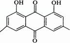 大黃游離羥基蒽醌類化合物的化學(xué)結(jié)構(gòu)式 2.1 大黃素(Emodin):分子式C15H10O5,分子量270.23。橙色長(zhǎng)針狀結(jié)晶(丙酮中結(jié)晶)或黃色長(zhǎng)針狀結(jié)晶(甲醇中結(jié)晶),mp.256~257℃。幾乎不溶于水,對(duì)下列溶劑的溶解度分別為:四氯化碳0.01%,氯仿0.0718%,二硫化碳0.009%,乙醚0.14%,苯0.041%。易溶于乙醇、氨水、碳酸鈉和氫氧化鈉水溶液[15]。 2.2 大黃酚(Chrysophanol):分子式C15H10O4,分子量254.23。金黃色六角型片狀結(jié)晶(丙酮中結(jié)晶)或針狀結(jié)晶(乙醇中結(jié)晶),mp.196℃,能升華。易溶于乙醚、氯仿、苯、冰乙酸、乙醇,稍溶于甲醇,難溶于石油醚,不溶于水、碳酸氫鈉和碳酸鈉水溶液,可溶于氫氧化鈉水溶液及熱碳酸鈉水溶液[16]。 2.3 大黃素甲醚(Physcion):分子式C16H12O5,分子量284.26。金黃色針狀結(jié)晶,mp.207℃,能升華?扇苡跉溲趸c水溶液,溶解度與大黃酚相似[15]。 2.4 蘆薈大黃素(Aloe-emodin):分子式C15H10O5,分子量270.23。橙色針狀結(jié)晶(甲苯中結(jié)晶),mp.223~224℃。易溶于熱乙醇,在乙醚及苯中呈黃色,在氨水及硫酸中呈緋紅色[16]。 2.5 大黃酸(Rhein):分子式C15H8O6,分子量284.21。黃色針狀結(jié)晶(升華法),mp.321~322℃,330℃分解。幾乎不溶于水,溶于堿和吡啶,略溶于乙醇、苯、氯仿、乙醚和石油醚[16]。 3 大黃中化學(xué)成分的理化鑒別 3.1 取大黃粉末少量,加堿液呈紅色。 3.2 取本品粉末的稀乙醇浸出液,滴于濾紙上,再滴加稀乙醇,擴(kuò)散后呈黃色至淡棕色環(huán),置紫外光燈(365nm)下觀察,呈棕色至棕紅色熒光。(檢查蒽醌衍生物) 3.3 取本品粉末少量,進(jìn)行微量升華,顯微鏡下觀察可見菱狀針晶或羽狀結(jié)晶。 3.4 取大黃粉末0.1g,加水50ml,置水浴上加熱30分鐘,濾過(guò),濾液中加稀鹽酸2滴,用乙醚提取二次,每次20ml,除去乙醚層,水層加鹽酸5ml,置水浴中加熱30分鐘,冷卻,用乙醚20ml提取,分取乙醚層,加碳酸氫鈉試液10ml,振搖,水層顯紅色。(檢查羥基蒽醌衍生物) 3.5 取本品粉末0.1g,加甲醇20ml浸漬1小時(shí),濾過(guò),取濾液5ml,蒸干,加水10ml使溶解,再加鹽酸1ml,置水浴中加熱30分鐘,立即冷卻,用乙醚分2次提取,每次20ml,合并乙醚液,蒸干,殘?jiān)勇确?ml使溶解,作為供試品溶液。另取大黃對(duì)照藥材0.1g,同法制成對(duì)照藥材溶液。再取大黃酸對(duì)照品,加甲醇制成每1ml含1mg的溶液,作為對(duì)照品溶液。吸取上述三種溶液各4μl,分別點(diǎn)于同一以羧甲基纖維素鈉為粘合劑的硅膠H薄層板上,以石油醚(30~60℃)-甲酸乙酯-甲酸(15∶5∶1)的上層溶液為展開劑,展開,取出,晾干,置紫外光燈(365nm)下檢視。供試品色譜中,在與對(duì)照藥材色譜相應(yīng)的位置上,顯相同的五個(gè)橙黃色熒光主斑點(diǎn);在與對(duì)照品色譜相應(yīng)的位置上,顯相同的橙黃色熒光斑點(diǎn),置氨蒸氣中熏后,日光下檢視,斑點(diǎn)變?yōu)榧t色。(見附圖1、2) 4 大黃中游離羥基蒽醌類化合物的ESR試驗(yàn) 4.1 大黃中游離羥基蒽醌類化合物的提取分離和純化 4.1.1 提取工藝流程圖