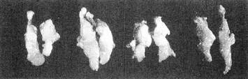 B.喂食杜仲葉提取物的B組小鼠,其內(nèi)臟相當(dāng)苗條 圖1小鼠杜仲喊肥試驗(yàn)(高橋周七,1992) 不妨看一下圖1A組和B組小鼠解剖後的照片,從中比較A組與B組小鼠內(nèi)臟之間的脂肪,從圖1中可以看到,那些沒有喂食杜仲葉提取物的A組小鼠比起那些喂食杜仲葉提取物的B組小鼠的脂肪,實(shí)在是多出很多。另外,經(jīng)解剖小鼠的內(nèi)臟,發(fā)現(xiàn)喂食杜仲葉提取物的B組小鼠肝臟中的中性脂肪,比起那些沒有喂食杜仲葉提取物的A組小鼠肝臟中的中性脂肪來,大約只有後者的一半。 日本大學(xué)高橋周七教授等又作了一個(gè)杜仲飼養(yǎng)的鰻魚試驗(yàn)。試驗(yàn)是在養(yǎng)殖鰻魚的人工飼料中添加2.5%的杜仲葉粉末,連續(xù)餵養(yǎng)一個(gè)月。一個(gè)月後,高橋周七將10條鰻魚拿到魚莊酒店,請(qǐng)廚師做菜。廚師切開其中一條鰻魚時(shí),一瞬間發(fā)出驚訝的聲音問道“這是人工飼養(yǎng)的鰻魚嗎?我己經(jīng)多年沒有見過肌肉這麼結(jié)實(shí)的鰻魚了,他結(jié)實(shí)的程度不亞於天然鰻魚呢!”。廚師將烤好的鰻魚放到桌上後,請(qǐng)了6位對(duì)鰻魚味道特別懂行的味覺鑒定專家來品嘗,6位專家品嘗後,一致認(rèn)為,魚肉相當(dāng)柔軟,其香味比起天然鰻魚亳不遜色。 鰻魚試驗(yàn)説明瞭杜仲葉中的天然活性物質(zhì),會(huì)給予養(yǎng)魚池中人工飼養(yǎng)的、運(yùn)動(dòng)不足的鰻魚有如同海潮流速急湍的、波濤洶湧的海洋中鰻魚游動(dòng)一樣的生理效果,使得他們不肥胖,所以肉質(zhì)鮮美而不油膩。 1993年9月13日,日本電視臺(tái)在《難忘的美食》節(jié)目中專門介紹了“杜仲鰻魚”的美味,好多人現(xiàn)場(chǎng)品嘗,讚不絕口。目前,日本有專門飼養(yǎng)和銷售“杜仲鰻魚”的企業(yè)和商店。 對(duì)“杜仲鰻魚”進(jìn)行解剖,發(fā)現(xiàn)“杜仲鰻魚”體內(nèi)的中性脂肪(皮下脂肪)減少了20%以上,膠原蛋白質(zhì)比非杜仲飼料飼養(yǎng)的鰻魚多出1.3倍,肌肉細(xì)胞成分多出1.6倍,新陳代謝更加良好,肥胖現(xiàn)象得以消除(高橋周七,1992)。其組織相當(dāng)細(xì)密,而非“杜仲鰻魚”者則組織相當(dāng)粗糙且有裂痕(圖2)。