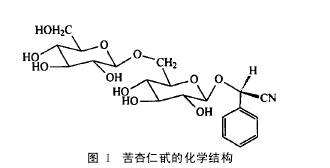 摘要:建立了從山楂中提取苦杏仁甙的方法,樣品先用石油醚脫脂,然后用甲醇進(jìn)行索氏提取。用高效液相色譜法定量測(cè)定了山楂中的苦杏仁甙,色譜條件如下:反相C18柱,流動(dòng)相為15%的甲醇水溶液,檢測(cè)波長(zhǎng)為215nm。測(cè)定了含不同比例山楂籽的山楂樣品,結(jié)果表明含山楂籽比例高的山楂樣品中苦杏仁甙的含量高,且山楂粗粒樣品中苦杏仁甙的提取量比粉末樣品的提取量高。 關(guān)鍵詞:高效液相色譜法;索氏提取;超聲提取;苦杏仁甙;山楂 苦杏仁甙(amygdalin,化學(xué)名為苯羥基乙氰-β-D-葡萄糖-6-β-D-葡萄糖甙,結(jié)構(gòu)式見(jiàn)圖1)屬于芳香族甙,是維生素B17的主要成分,它廣泛存在于薔薇科植物的種子中。在苦杏仁甙酶的作用下苦杏仁甙將分解產(chǎn)生氫氰酸,對(duì)呼吸中樞產(chǎn)生一定的抑制作用,起到鎮(zhèn)咳平喘的功效。盡管少量的氫氰酸能止咳,但在人體內(nèi)積累到一定量后氫氰酸會(huì)和細(xì)胞線(xiàn)粒體中的氧化酶反應(yīng)而抑制酶的活性,進(jìn)而抑制組織細(xì)胞的呼吸作用而致人死亡。因此必須限定苦杏仁甙在食物、藥物中的含量。