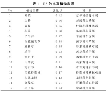 [摘要] 熊果酸是存在于植物中的一種三萜類化合物,具有抗腫瘤、抗菌、降血脂等藥理作用,現(xiàn)綜合國(guó)內(nèi)外文獻(xiàn)報(bào)道,對(duì)熊果酸提取分離方法和含量測(cè)定及藥理作用等方面進(jìn)行綜述。熊果酸具有廣闊的應(yīng)用前景,亟待開(kāi)發(fā)。 [關(guān)鍵詞] 熊果酸;提取分離;抗腫瘤 熊果酸(ursolic acid,UA)又名烏索酸、烏蘇酸,是存在于天然植物中的一種三萜類化合物,相對(duì)分子質(zhì)量為456,具有廣泛的生物學(xué)效應(yīng)。它體外對(duì)G+和G-菌及酵母菌均有抗菌活性;有抗糖尿病、抗?jié)兗敖档脱淖饔。同時(shí)具有抗致癌、抗促癌,誘導(dǎo)F9畸胎癌細(xì)胞分化和抗血管生成作用,是一種極佳的滅毒高效新型抗癌藥物,另外還具有明顯抗氧化功能并且對(duì)中樞神經(jīng)系統(tǒng)有明顯的安定與降溫作用,因而被廣泛的用作醫(yī)藥和化妝品原料。 1 植物來(lái)源 UA在自然界中分布很廣,存在于多科植物中,UA以游離形式或與糖結(jié)合成苷的形式分布于約7個(gè)科46個(gè)屬62種植物。含量及科屬見(jiàn)表1。