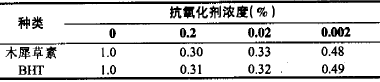 3結(jié)論 TBA快速測(cè)定法結(jié)果表明,木犀草素在芝麻油中 顯示良好抗氧化性,有效濃度為0.02%。在此濃度下, 木犀草素在芝麻油和豬油中抗氧化效果與BHT相近, 在豬油中抗氧化能力比茶多酚強(qiáng)。且木犀草索還原能力 和清除羥自由基能力均比茶多酚和BHT強(qiáng)。木犀草素 對(duì)食品中常見供試四種菌具有高效抗菌活性,且隨濃度 增加而增強(qiáng),對(duì)金黃色葡萄球菌、枯草桿菌、啤酒酵母和 大腸桿菌完全抑制濃度分別為300 mg/L、200 mg/L、 250 mg/L、300 mg/L;表明木犀草素作為天然防腐劑和 抗氧化劑具有很好開發(fā)潛力,在食品、醫(yī)藥等領(lǐng)域有著 廣泛應(yīng)用前景。 |