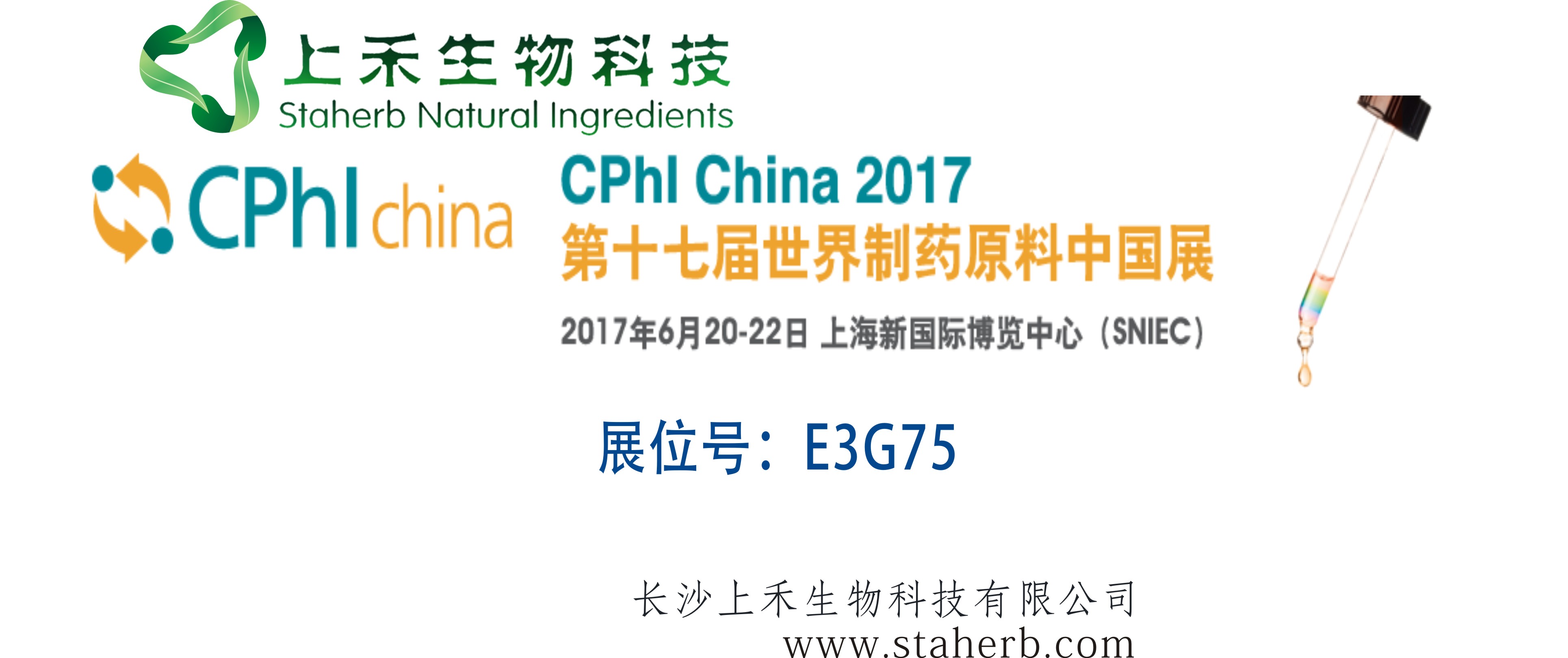 長沙上禾生物科技參加 CPHI China 2017 展位E3G75,歡迎蒞臨參觀指導(dǎo)。 此次主要展示的為我公司主打產(chǎn)品: 杜仲提取物綠原酸 苦杏仁提取物苦杏仁甙 洋甘菊提取物芹菜素 迷迭香提取物(熊果酸 迷迭香酸 鼠尾草酸) 大黃素 熊果酸 楊梅素or二氫楊梅素 厚樸提取物(厚樸總酚 和厚樸酚 厚樸酚) 金銀花提取物綠原酸 科羅索酸